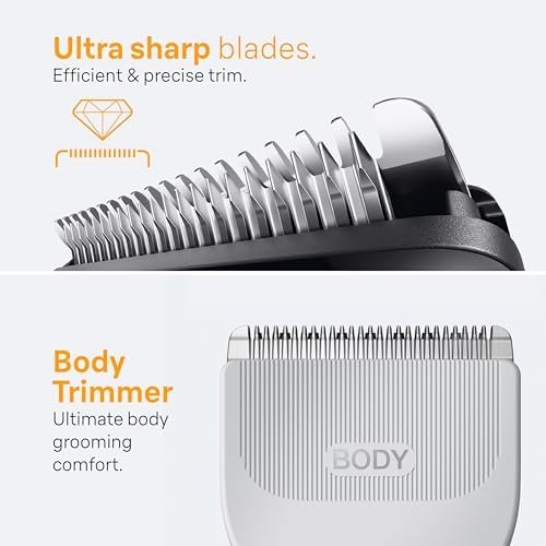 * 8-in-1 Curated System: The primary strength of this kit is its all-in-one nature. It includes a beard trimmer head, a body groomer, a precision trimmer attachment, and combs for various lengths. This eliminates the need for a cluttered drawer full of single-use tools. The inclusion of a detail trimmer is particularly useful for hard-to-reach areas like the ears and nose, providing a clean and safe trim without needing a separate device.