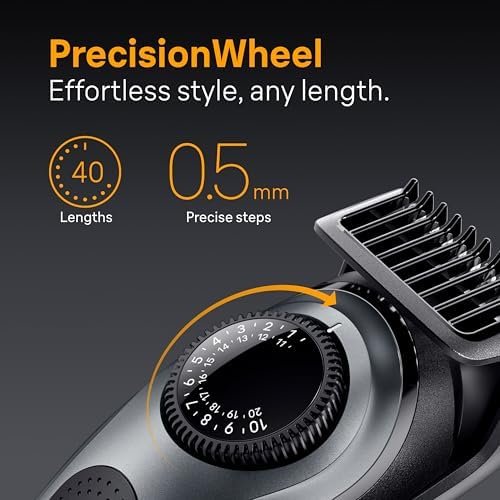 * Precision Wheel with 40 Length Settings: At the heart of its versatility is the precision wheel. This dial allows you to select from 40 different lengths in precise 0.02-inch increments. Unlike generic combs that offer limited options, this wheel provides unparalleled control for creating sharp lines, faded styles, or simply maintaining a consistent length. This feature alone elevates it beyond basic trimmers and places it in the category of a professional-grade precision beard trimmer.
