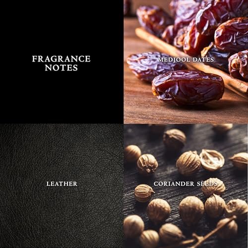 The fragrance opens with an intriguing combination of Medjool Dates, which provides a sweet, rich depth that immediately captures attention. This unusual top note is beautifully balanced by the aromatic warmth of Coriander Seed, adding an exotic spice element that prevents the sweetness from becoming overwhelming. The heart of the fragrance is built around sophisticated Leather Notes, which ground the composition with a classic, masculine foundation.