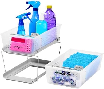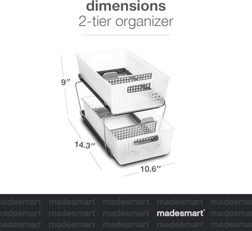 Keep your space tidy with the madesmart 2 Tier Bath Organizer, a versatile storage solution featuring adjustable dividers, sliding baskets, and durable BPA-free construction—perfect for under-sink, kitchen, or desk organization. From the trusted madesmart brand, this organizer makes decluttering effortless and stylish.