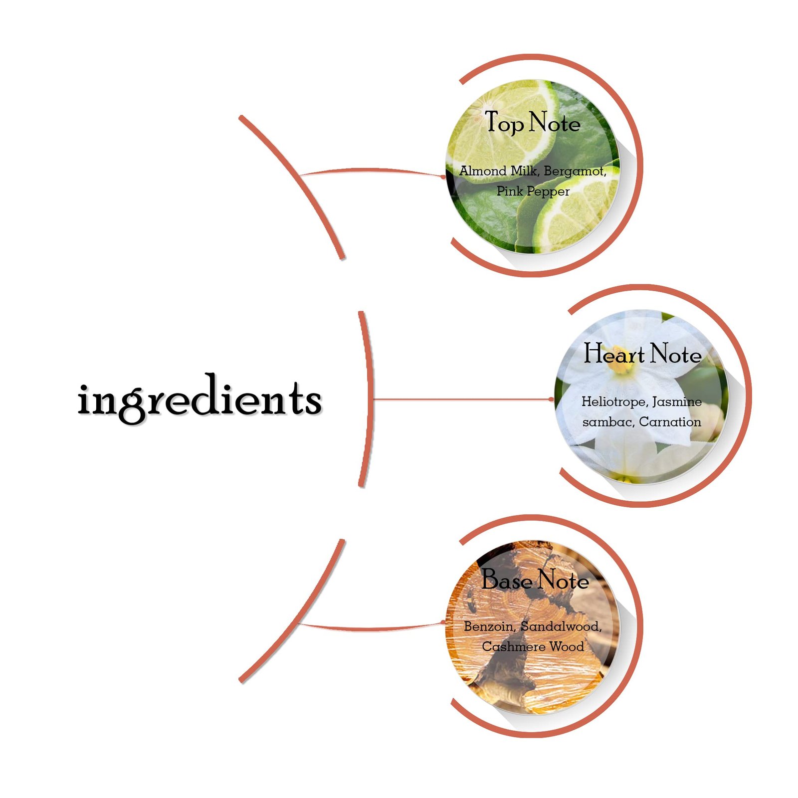 The adventure begins with the Top Notes, a vibrant and uplifting blend of Almond Milk, Bergamot, and Pink Pepper.